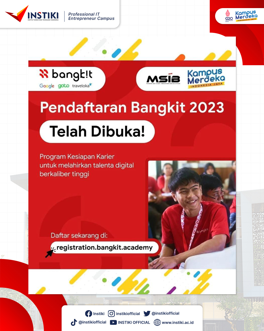 Bangkit adalah program kesiapan karier yang didesain oleh Google untuk memberikan mahasiswa Indonesia paparan langsung dengan praktisi industri, serta mempersiapkan mahasiswa dengan keterampilan yang relevan untuk karir sukses di perusahaan teknologi terkemuka. Program ini merupakan program kesiapan karier yang dipimpin oleh Google, GoTo, dan Traveloka. Diluncurkan pada tahun 2020, program Kampus Merdeka ini menawarkan 3 pilihan jalur pembelajaran yaitu machine learning, mobile development, dan cloud computing. Tidak hanya keterampilan teknologi, Bangkit juga menyediakan pengembangan Bahasa Inggris dan soft skill yang penting untuk pesiapan karir. Semua program ini disediakan secara gratis.